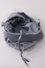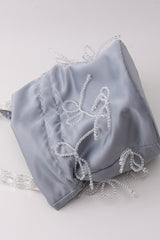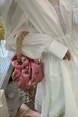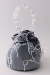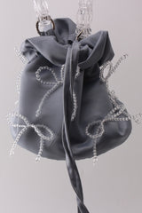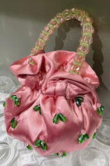 This crystal embellished fabric tote. Embellished with teardrop-shaped crystals and features beaded handles!