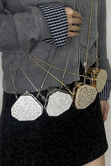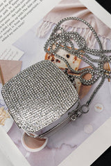 Fashionistas will be thrilled with this bag! Decorated with rhinestones and a long chain, this bag is a trendy eye-catcher and can even be used as a jewelry box.