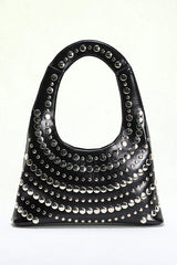 This punk style rivet shoulder bag. The exterior is made of PU fabric. It also has rivet decoration. It can be used as a clutch or a shoulder bag!