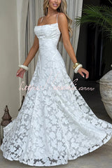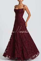Francis Floral Burnout Jersey Fabric Cowl Neck Back Lace-up Maxi Dress