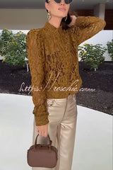 Palace Style Crochet Flower Lace Stand Neck Button Puff Sleeve Jacket