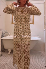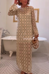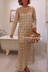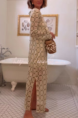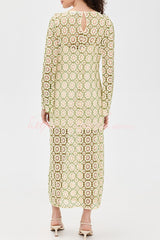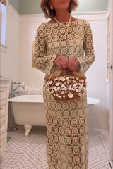 Summer Fashion Floral Crochet Cutout Fabric Long Sleeve Slit Vacation Midi Dress