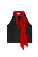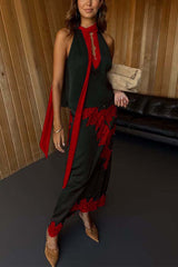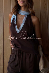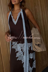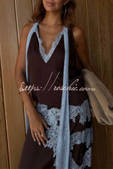 Sunday Social Contrast Color Satin Lace Trim Neck Strap Loose Tank