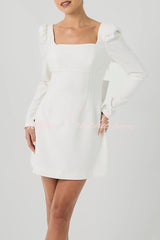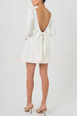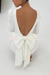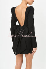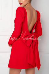 - Our dresses feature a low back detail and long sleeves for a refined touch and ultimate luxury. With its flattering mini length and eye-catching bow, you'll make a statement and be the envy of all. Join the record-breaking sign-up campaign to purchase this must-have dress..