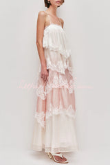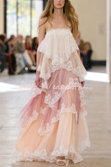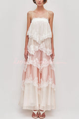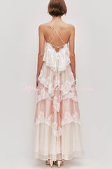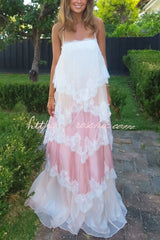 Caroline Gradient Layered Lace Trim Tiers Adjustable Straps Backless A-line Maxi Dress