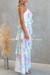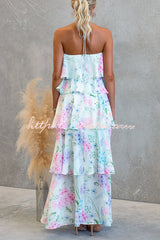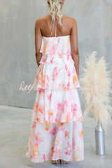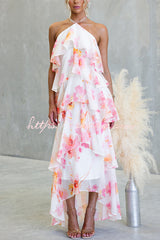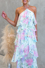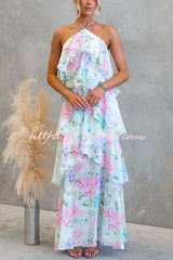 Poetic Eden Chiffon Floral Print Tiered Ruffles Halter A-line Maxi Dress