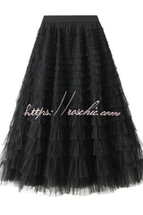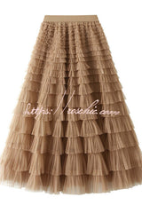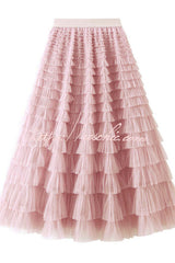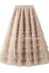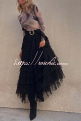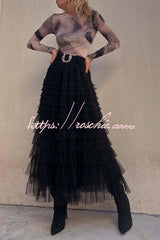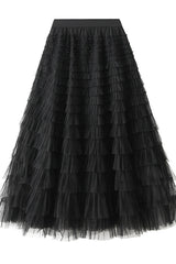 Be Your Own City Queen Tiered Elastic Waist Tulle Maxi Skirt