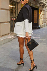 Enhance Look Colorblock Long Sleeve Pocket Lapel Blazer and And Mid Rise Mini Skort Set
