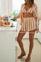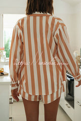 Justine Loose Striped Shirt and Elastic Waist Short Set with Cami Top
