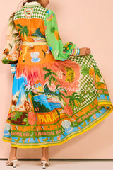 - Multicolor shirt dresses bring a world of color to your summer look. This fitted midi dress features a dropped waist, pleated skirt, balloon sleeves and a braided jacquard tie with fringed ends. Full of movement, perfect for life's special occasions.