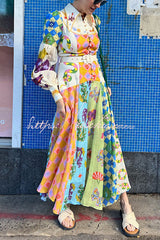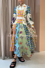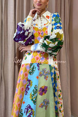 Bold and Chic Irregular Unique Print Balloon Sleeve Belt Shirt Midi Dress