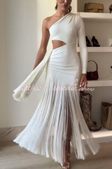 Amazing Type One Shoulder Cutout Drape Tassle Trim Stretch Maxi Dress