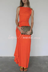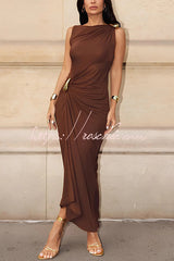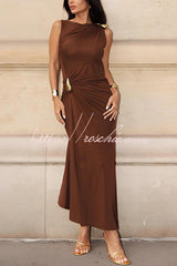 Fashionable Metallic Embellishments Pleated Sleeveless Slim-fit Maxi Dress