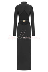 Sexy Backless Long-sleeved Stretch Slim-fit Maxi Dress