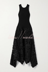 Atlas Asymmetric Ribbed-knit and Guipure Lace Back Zipper Midi Dress