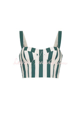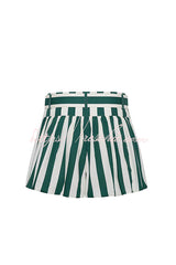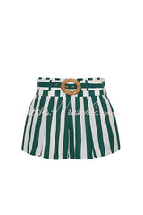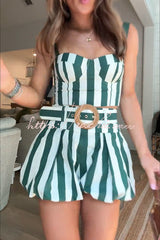 Claudine Striped Heart-shaped Smocked Tank and Raffia Buckle Belted Pocket Bubble Shorts Set