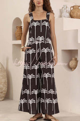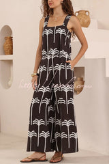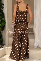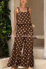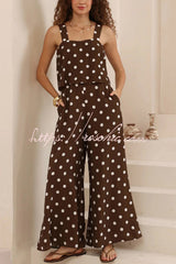 Polka Dot Print Loose Sleeveless Casual Wide-leg Jumpsuit