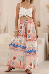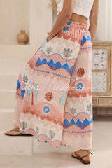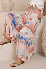 Resort-style Unique Printed Casual Stretch Waist Drawstring Pocket Wide-leg Pants