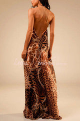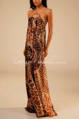 Savana Animal Paisley Print Metal Ring Halter Backless Vacation Maxi Dress