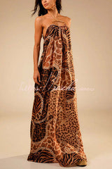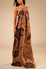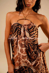 - This long dress, crafted from a lightweight fabric and adorned with delicate prints, cleverly blends animal prints with classic elements. The metallic halter neckline accentuates the alluring collarbone, while the flowing skirt adds a touch of dynamism and elegance. The open back and eye-catching details further enhance its sophistication, making it an ideal choice for creating a naturally elegant look.Our distinctive clothing will add instant style to your wardrobe.