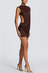 Solid Color Casual Sleeveless Backless Elegant Ribbon Slim-fit Mini Dress