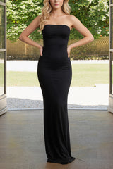 Solid Color Sleeveless Off-shoulder Elegant Slim-fit Fishtail Maxi Dress