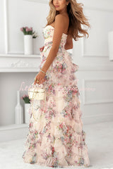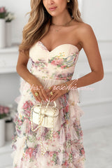 Soraya Tulle Floral Print Off Shoulder Ruffles Tiered Hem Party Maxi Dress