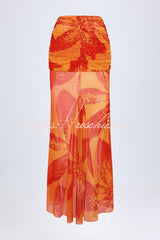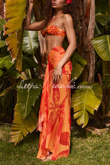 Unique Printed Metallic Floral Halter Top and Holiday Pleated Slit Maxi Skirt Set