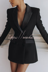 Modern Evening Gown Satin Lapel Button Long Sleeve Tuxedo-style Blazer Mini Dress