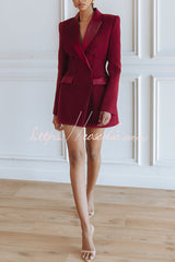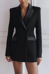 • This tuxedo-style mini dress is sure to make you the center of attention. Crafted from luxurious crepe fabric, this fitted mini dress features a satin neckline and flowing shoulders that flatter a figure that is both powerful and feminine. The double-breasted design and cinched waist create a captivating hourglass silhouette, exuding refined elegance.Our distinctive clothing will add instant style to your wardrobe.