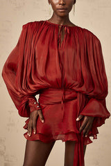 Solid Color Long-sleeved Belted Asymmetrical Mini Dress and Elastic Waist Casual Shorts Set