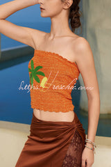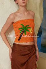 Coconut Tree Print Sleeveless Off-Shoulder Casual Top