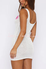 Fashionable Floral Embroidered Sleeveless Slim-fit Knit Mini Dress