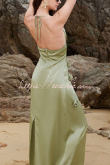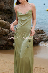 Floral-embellished Solid Color Halter Neck Elegant Maxi Dress