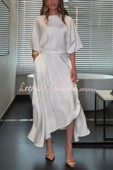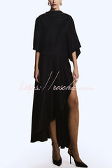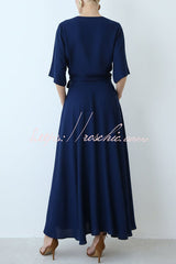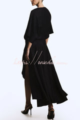 Modern and Elegant Satin Half Wide Sleeve Wrap Style Pocket Slit Loose Maxi Dress