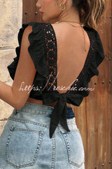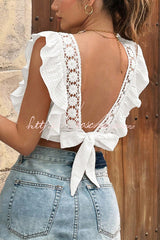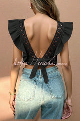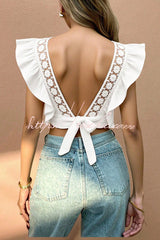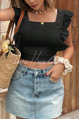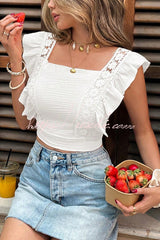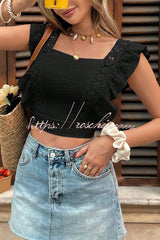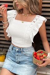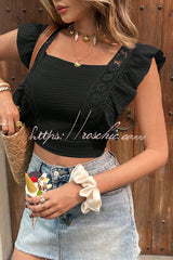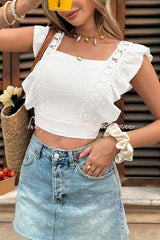 Solid Color Square Neck Lace Trim Slim-fit Cropped Top