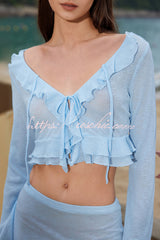Stylish V-neck Long-sleeved Ruffled Top and Stretchy Slim-fit Mini Skirt Cover-up Set