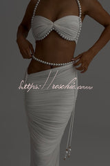 Imalia Stretch Mesh Pearl Trim Gathered Tank and Detachable Belt Vacation Maxi Skirt Set