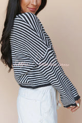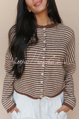 Fashionable Contrast Striped Casual Long-sleeved Knitted Cardigan