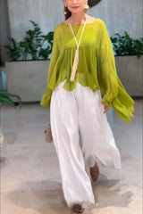Romantic Journey Chiffon Ruffle Batwing Sleeve Top and Elastic Waist Pocket Loose Pants Set