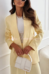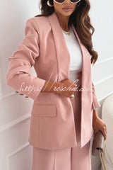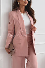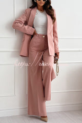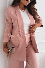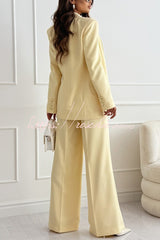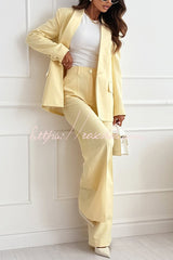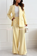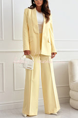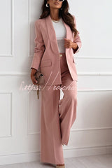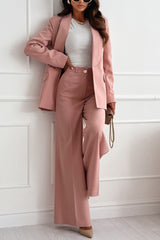 Solid Color Lapel Long Sleeve Casual Blazer and Pocket Wide Leg Pants Set