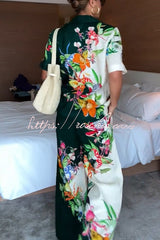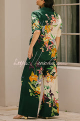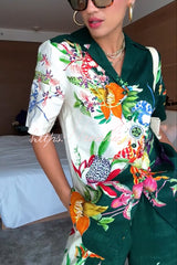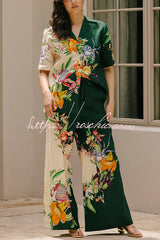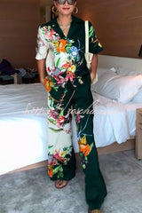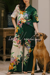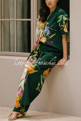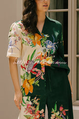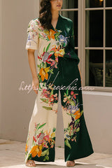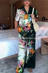 Island Linen Blend Unique Print Short Sleeve Loose Shirt and Elastic Waist Pocket Pants Set