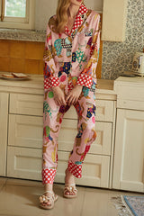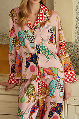 Wearing Leopard Print Long Sleeved Home Two-piece Set