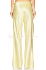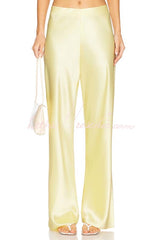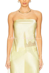 Odessa Satin Floral Lace Hem Strapless Tank and Mid Rise Wide Leg Pants Set