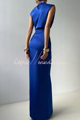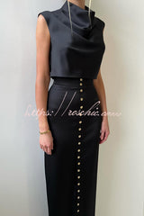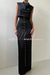 Solid Color Casual Sleeveless Crop Top and Elegant Button-down Maxi Skirt Set
