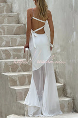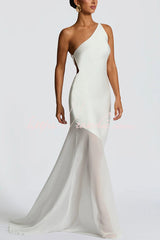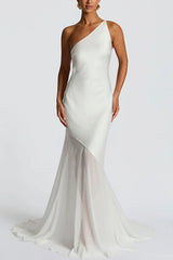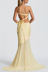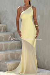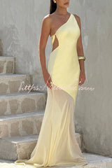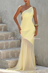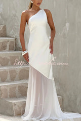 Fable Satin One Shoulder Back Adjustable Straps Contrast Chiffon Hem Maxi Dress