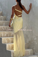 - Exude timeless elegance in the Fable Gown in vibrant Lemon. This sophisticated maxi features an asymmetric neckline with internal gripper tape, adjustable straps, and an alluring open back design. The fitted silhouette through bust, waist and hips flows into a dramatic fishtail flare with train detail.Our distinctive clothing will add instant style to your wardrobe.