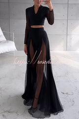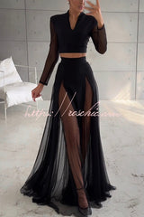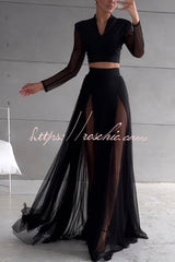 Feeling Chic Mesh Long Sleeve Crop Stretch Top