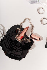 Go for all the glam vibes this season with this silver sequin mini bag, it is perfect for your weekend plans and beyond. This bag features silver sequins with a mini size and chain detailing, what more could you want? Pair this mini bag with your fave weekend fit for a look we just can't get enough of.