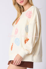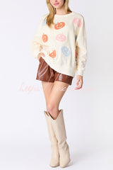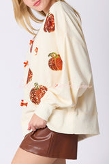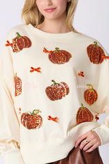 Halloween Colorful Pumpkin Embroidered Loose Casual Sweatshirt